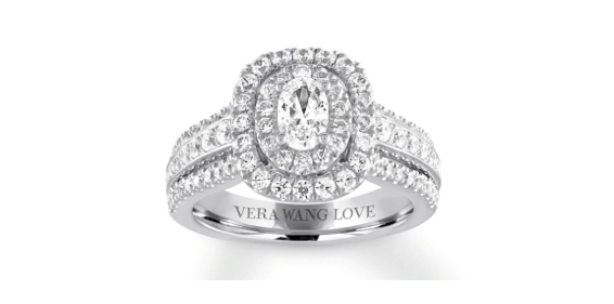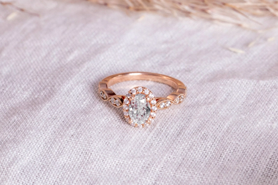 Adding a border of tiny gems around an oval cut diamond can highlight the shape of your center stone and make it stand out even more.