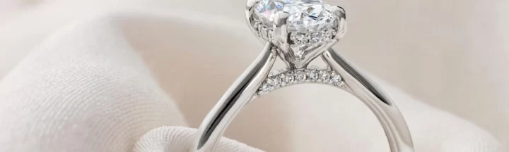 A solitaire ring with an east-west orientation (placing the stone lengthwise) is a trendy option that works well with a pear-shaped diamond.